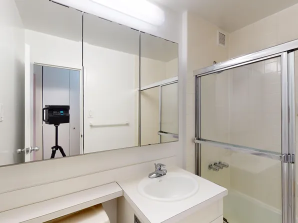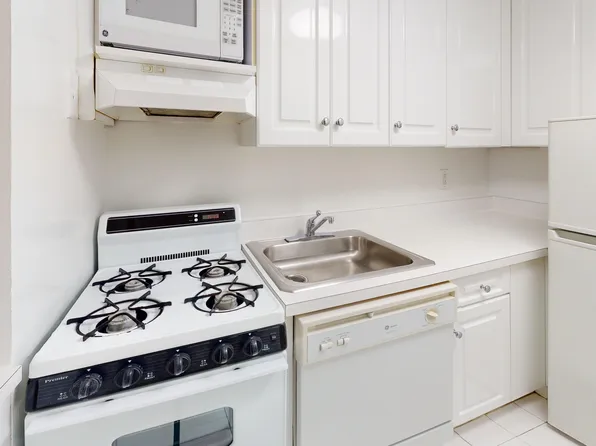 Bright and quiet, north facing studio with ample closet space (4 closets), overlooking private courtyard garden on high floor. Separate windowed kitchen. Central AC/heating unit with temperature control.