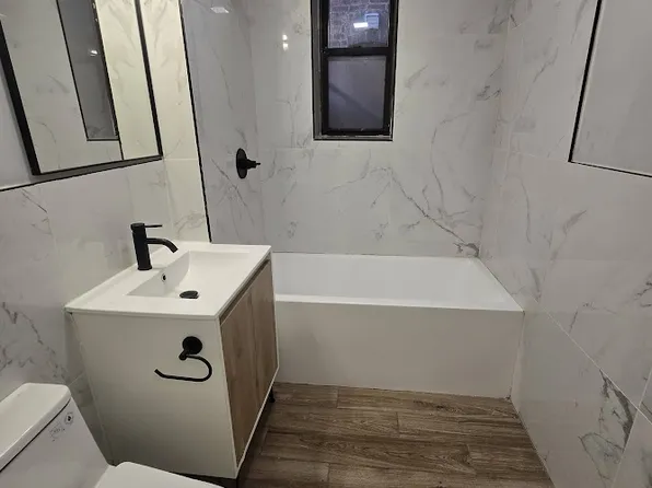 Fully renovated, extra-large three-bedroom, two-full bath apartment with parking in midtown Bayonne. Situated on the first floor, this spacious unit features hardwood floors throughout and all brand new windows. Discover a generous living room, a formal dining room, and a large kitchen equipped with a bar and stainless steel appliances.