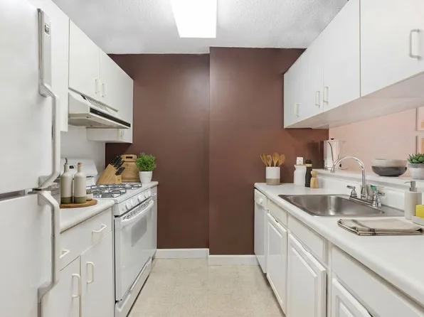 Welcome to your new home that is full on windows offering amazing natural light, large living as well as separate queen size bedroom area, and separate pristine white cabinets eat in kitchen! Rarely available offering a great layout!