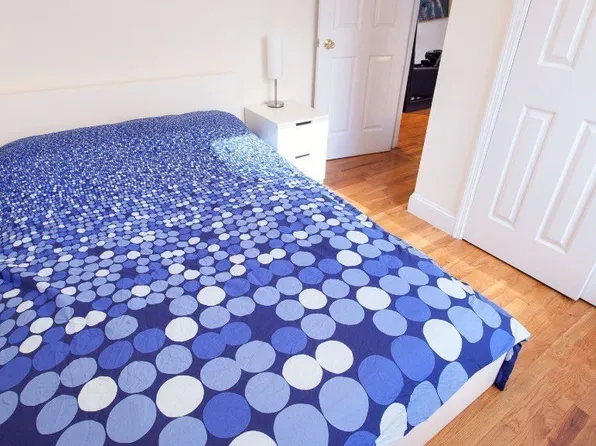 The primary bedroom easily fits a king-size bed with plenty of additional space for furniture. The second bedroom is well-proportioned and versatile. The kitchen features a dishwasher and offers space for a dining table.
