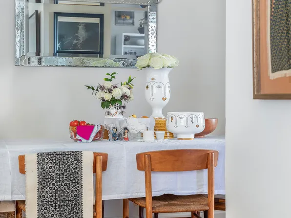 Upon entering, a proper entry foyer with two closets off the adjacent hall offers a lovely spot to greet your guests and drop your things, with space enough for a tidy home office or reading nook as well! The spacious and sun drenched...