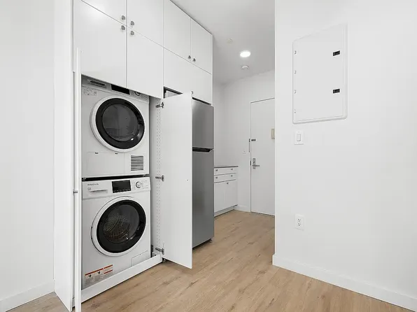 Have it all in this super-stylish, spacious and bright 1-bedroom apartment. With central AC, in-unit washer/dryer, dishwasher, 2 full baths and 2 large walk-in closets — you will not want for comfort. The kitchen and baths are recently renovated with high-end finishes and appliances. Hardwood floors throughout are sleek and smooth, two sets of double pocket doors separate each room.
