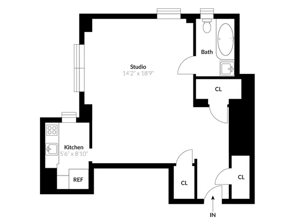 Large South Facing Studio, Light , Views, and Huge Walk in Closet