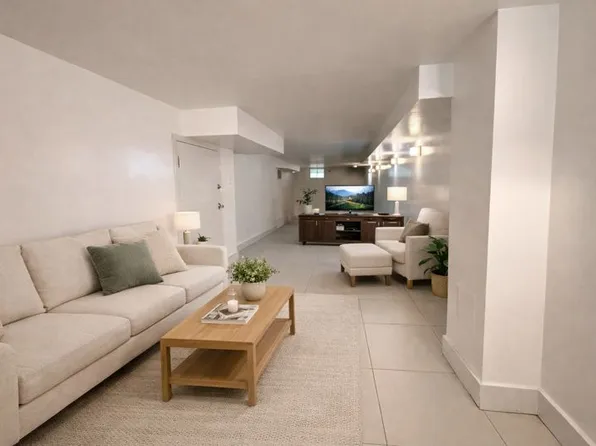 Spacious living room and a huge, open space basement with its own bathroom