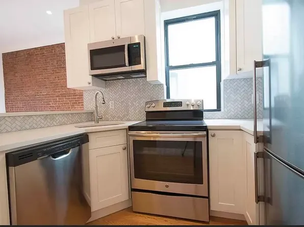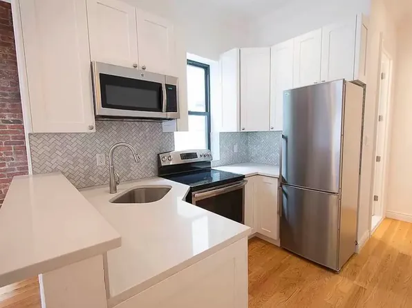 Spacious 4-bedroom home at 591 Franklin Avenue featuring hardwood floors throughout and a full kitchen with appliances (including refrigerator and oven). Clean, bright layout with great flexibility for bedrooms plus living room âideal for anyone needing extra space in a classic Brooklyn setting.