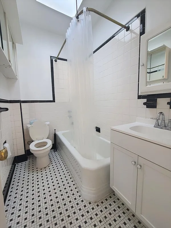 Large bathroom with skylight.