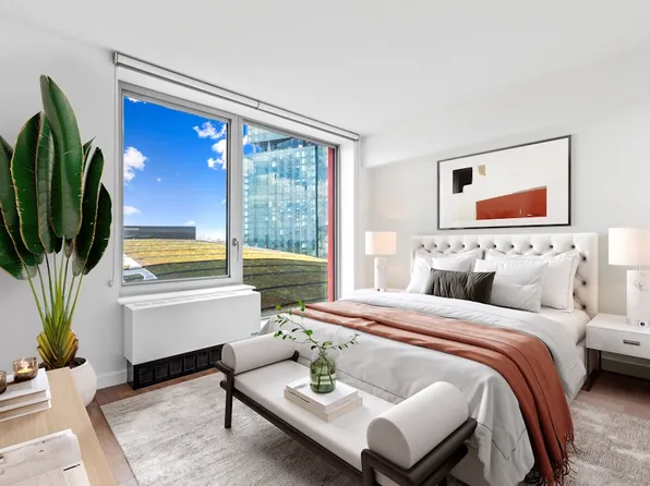 Stunning 1 bed apartment featuring an open kitchen, spacious living/dining area with floor-to-ceiling windows, ample closet space, in-home laundry, and eastern exposure with gorgeous views of Brooklyn. Gross Rent $4775.