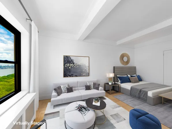 Welcome to apartment 18H at 60 Riverside Drive, an ideal high-floor studio with commanding skyline views located along the waterfront of the Upper West Side.