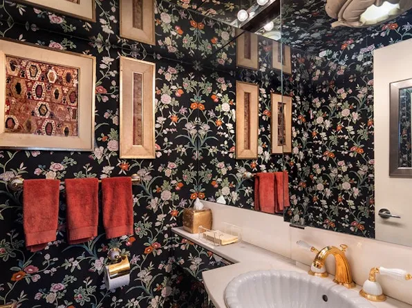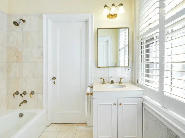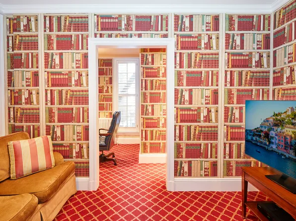 Currently configured as a spacious three-bedroom, four-bathroom home, the layout can easily be returned to four bedrooms if desired. A gracious entry gallery leads to an oversized living room with impressive proportions, centered around a decorative fireplace and complemented by a custom-built bar finished in antique glass.