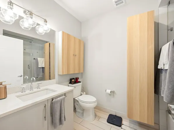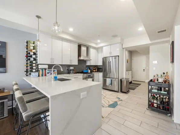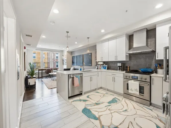 Welcome home to this beautiful, sunlit 2 bed, 2 bath condo at The Hoboken Grande in the heart of Hoboken! Look no further for your new home, this south facing unit comes complete with your own private and quiet balcony with views of the Courtyard. The kitchen has a granite breakfast bar, all stainless steel appliances, a beautiful backsplash, maple cabinets, a dining space, and access to the balcony.