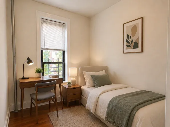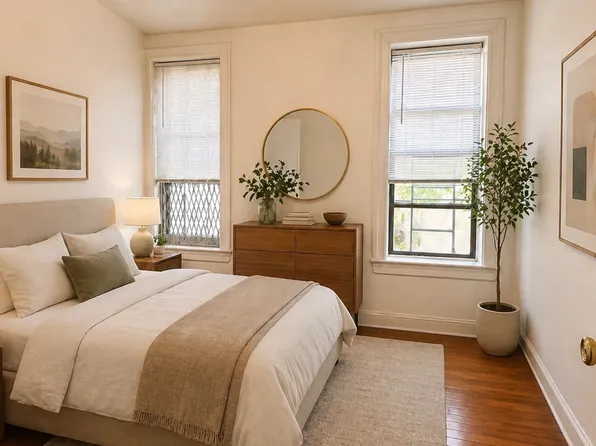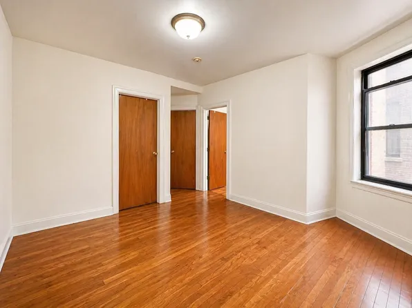 Spacious three-bedroom apartment in Washington Heights featuring large bedrooms, rich hardwood floors, and sleek stainless steel appliances complemented by modern tile finishes. Pet friendly and conveniently located just steps from the 181st Street trains.