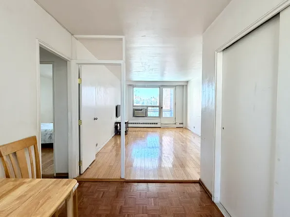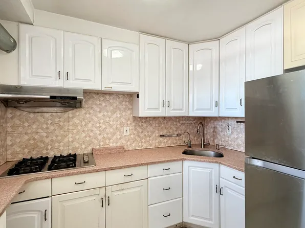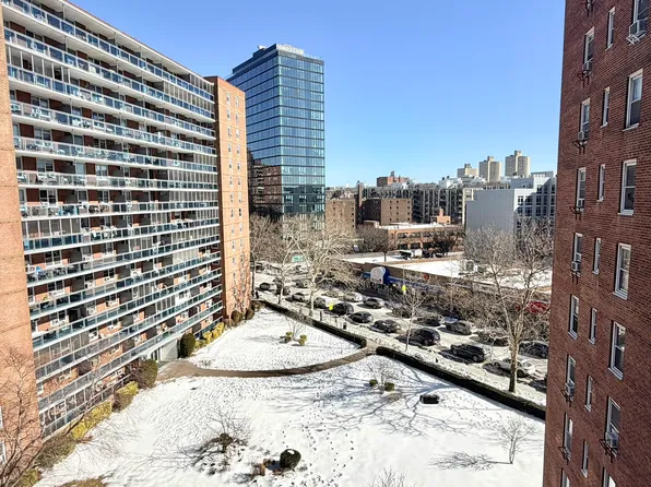 Step into this cozy, well-maintained 1 bedroom home featuring a terrace, generous closet space & A BRIGHT windowed kitchen. Perfectly situated just across from Rego Center Mall, this home offers unbeatable convenience! This 24Hr Full Service Doorman building features: Building Link, two laundry facilities, indoor parking (waitlist & fee), private playground, storage room (fee), live-in Super & much more.