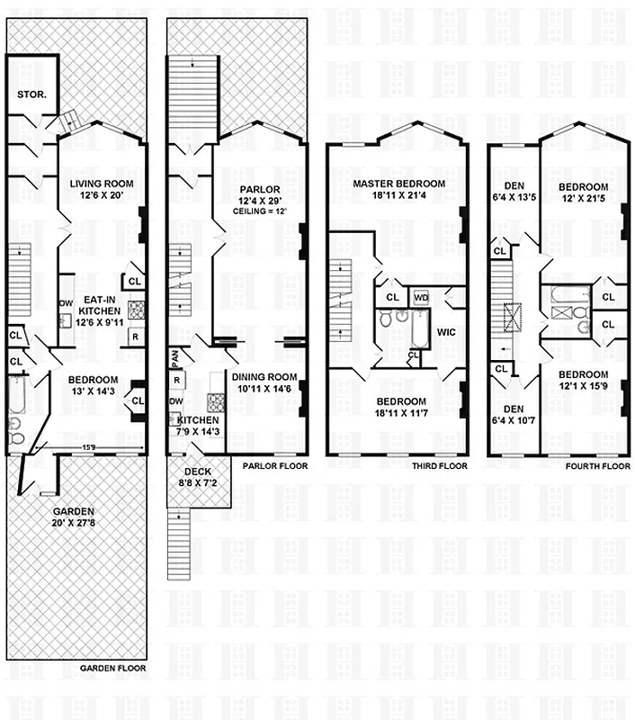 Details abound in this 4 story North Slope gem. This lovingly maintained 4 story brownstone offers all the space you would want. This home offers an upper triplex with a garden floor rental. Upon entering the foyer the first thing you will be struck by is the intricate detail of the beautiful original woodwork, continuing you enter the double parlor doors where there is a formal living room and formal dining room both with 11+ ceilings, marble mantles and gorgeous working pocket doors.