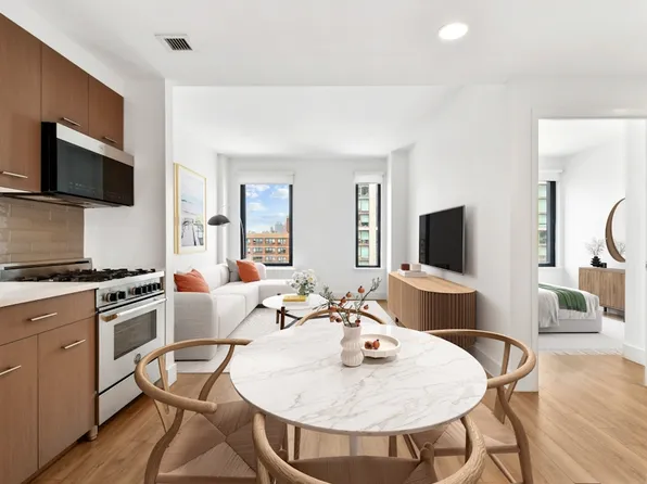 Welcome to 5A at 643 East 11th Street: a high-floor, south-facing 1-bedroom in a modern elevator building in the heart of the East Village. Oversized French doors open onto Juliet balconies in both the living room and the bedroom, flooding the apartment with all-day southern light and pulling the neighborhood right up to your doorstep.