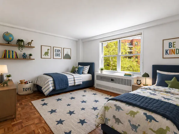 This beautifully updated, spacious top-floor corner two-bedroom, convertible three-bedroom cooperative-featuring three exposures and an alcove with its own window that can function as a third bonus room-offers abundant natural light, exceptional privacy, and peaceful living.
