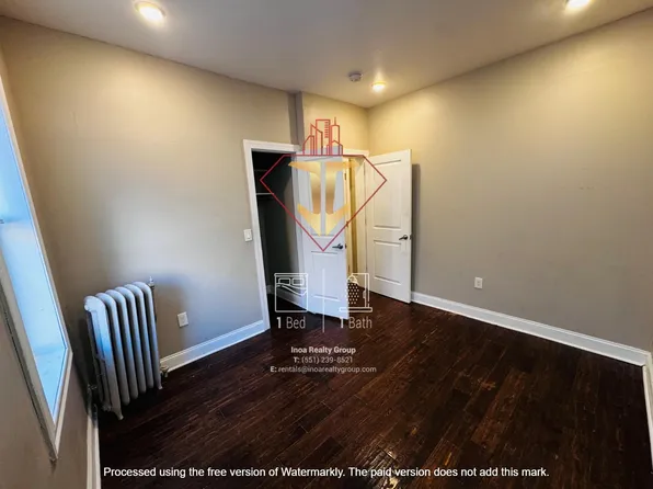 Spacious 1 Bedroom apartment with lots of closet space and natural light. Large spacious living room with storage closet. Living room window faces the beautiful St. Henry's Church across the street. Full kitchen contains gas stove-top and Haier fridge and plenty of cabinet space. Blinds for all windows are included and a a window AC unit for the bedroom. Includes large walk-in closet and coat closet with additional storage space.