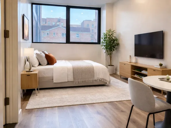 Beautiful and spacious, studio apartment. The room is large, can fit queen size bed and living room furniture, the kitchen is open with the room and has new white appliances, and the bathroom is updated. Pets are allowed up to 35lbs The apartment is located in very well maintained elevator building with laundry inside.