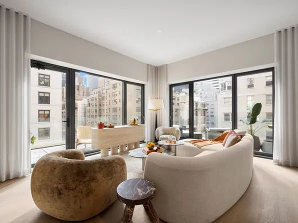 Introducing Residence 7A: a light-filled two-bedroom, two-and-one-half-bathroom residence designed by Paris Forino Interior Design, spanning 1,479 interior square feet, and with a 171-square-foot private terrace.
