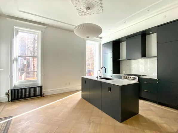 Step into this stunning duplex in the heart of Crown Heights, a residence where historic charm meets modern sophistication. Set on one of Brooklyn's most picturesque streets, this pre-war mansion crafted from Roman Brick and Limestone boasts timeless architectural beauty and meticulous restoration.