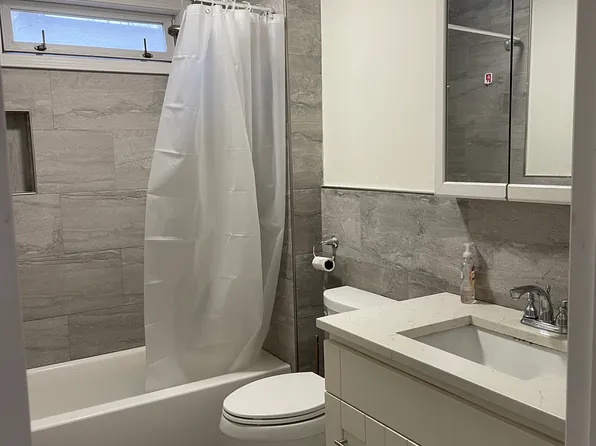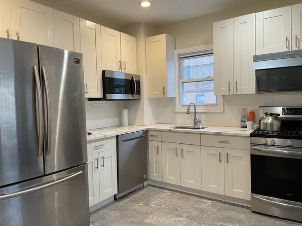 Semi attached townhouse, first floor apartment with 3 nice sized bedrooms and 2 full baths, master en-suite. Newly renovated open kitchen with dishwasher, hardwood floor throughout, many windows with natural sunlight. In unit washer/dryer. 1 car parking included in the backyard. Zoned to PS144, 1 block away.