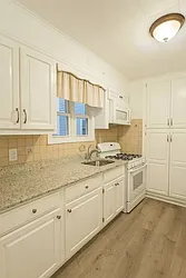 Spacious 3-bedroom, 1-bath apartment on the 3rd floor with a private balcony. The kitchen comes with a refrigerator, stove, and dishwasher. Coin-operated washer and dryer are available in the basement. Apartment is in excellent condition. Tenant pays for electric and gas. Lease requires 1 month rent and 1 month security deposit. No pets allowed.