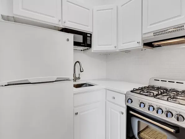 Huge studio apartment in a prime Upper West Side elevator building with on-site laundry. The kitchen features stainless steel appliances, including a dishwasher, along with abundant cabinet space.