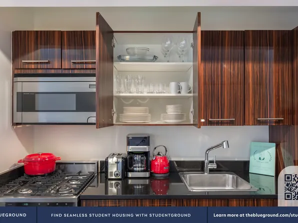 Large studio w/bonus foyer space that can be used for sleeping alcove or home office. Enjoy a gourmet kitchen w/stone counter tops & stainless steel appliances, multiple closets, and in-unit w/d.