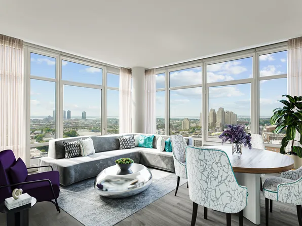 Unique Sky Club floor plan. This unit has an oversized 260 sq ft private courtyard terrace. The unit has been upgraded from floor to ceiling, wired for Verizon FIOS and prewired for surround sound. California style closets and plasma TV mount come with unit!!! Parking is available in the garage for approx. $240/mo. Copyright Hudson County MLS. All rights reserved. Information is deemed reliable but not guaranteed.