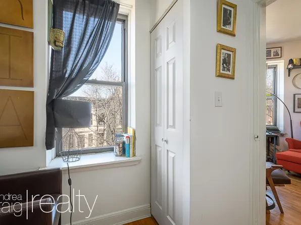Meticulously and tastefully renovated one bedroom on a quiet tree-lined street in prime Park Slope. High-end stainless steel appliances in the open kitchen include a full size stove and dishwasher. Granite countertops provide ample work space and a breakfast bar. Two oversized windows span the wall of the living room which is big enough to accommodate a large sectional sofa.
