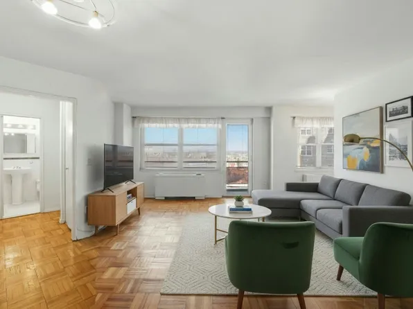 Unit 6E at the Forest Hills is now on the market! A junior four layout with a large balcony featuring beautiful sunset skyline views of lower Manhattan which include One World Trade Center as well as views of prime Forest Hills and all of its vibrancy. The apartment is very bright and airy with an ideal southwest exposure. This layout features a large dining area, an updated kitchen featuring loads of cabinets and counters, as well as an updated bathroom.