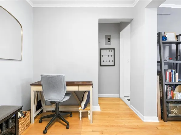 This beautifully renovated 1-bedroom home offers a smart, stylish layout with features that check all the boxes for comfort and convenience. Enter through a welcoming foyer with a large walk-in closet and multiple additional closets throughout—storage is never an issue here. The expansive living room is filled with natural light and includes a designated space perfect for a work-from-home setup.