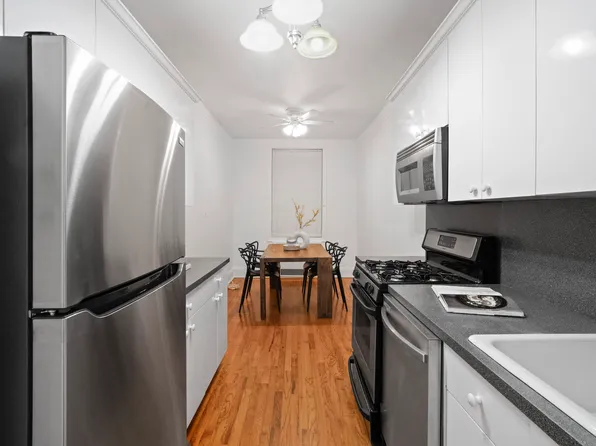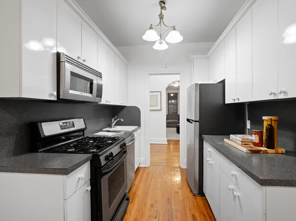 A spacious, recently renovated one-bedroom unit for sale, a great opportunity to live in or invest in a classic Pre-War condo building, on the top floor of 72-34 Austin Street in the heart of historic Forest Hills. Upon entering the generous foyer, you are led to the updated windowed kitchen, which features a dishwasher, wooden cabinets, and ample countertops.