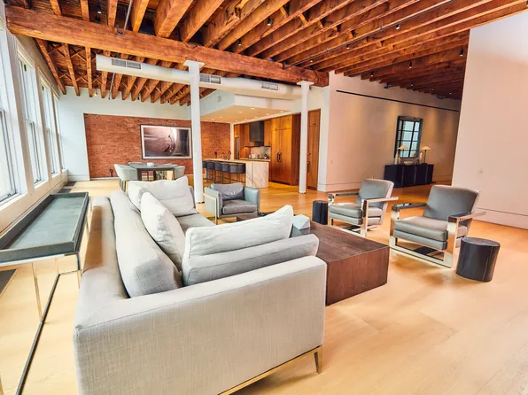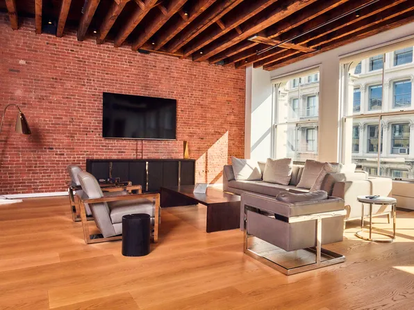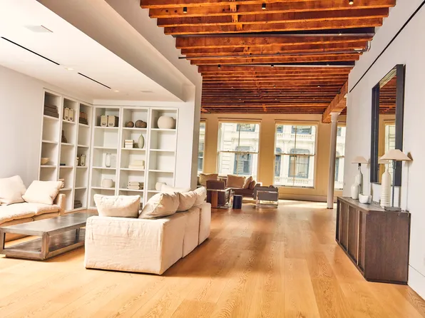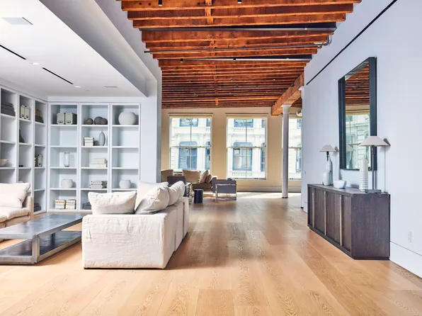 Penthouse A at 73 Wooster Street is a rarity: a mammoth loft, with an immense and private outdoor space, located in a discreet doorman condominium. Offering 4,856 square feet of living space, plus a 3,008-square-foot roof terrace, the home embodies spacious SoHo living. Featuring 15-foot ceilings, original casement windows, and 53 feet of frontage over West Broadway, Penthouse A is truly a trophy home for the downtown buyer who will compromise nothing.
