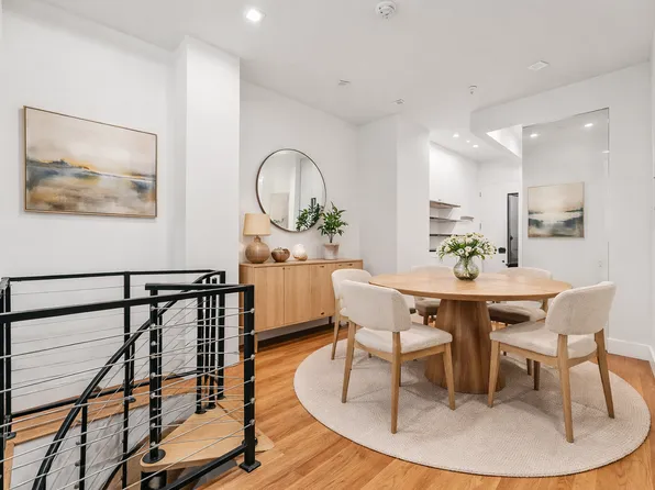 Enter through your own gate under the stoop into a bright combined living/dining area. The kitchen features stainless steel appliances including a refrigerator with ice maker, Whirlpool gas range with vented hood, and a whisper-quiet Bosch dishwasher.