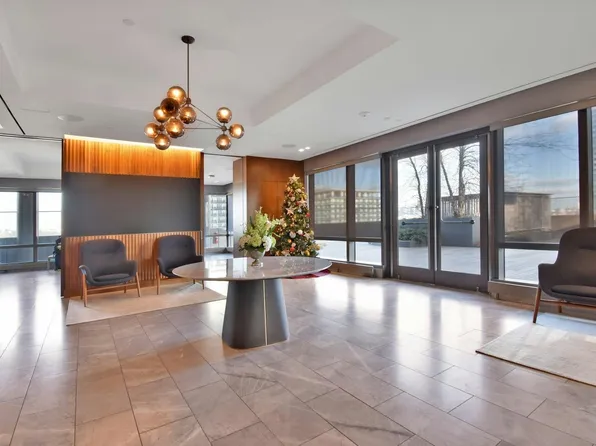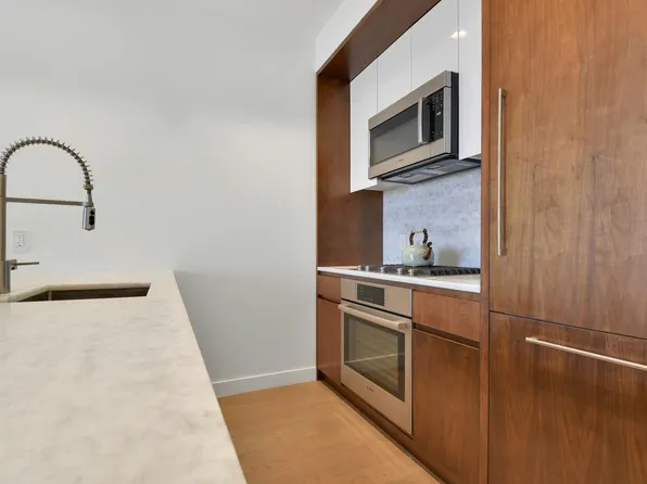 Welcome to 75 Park Lane—where spacious design and refined craftsmanship meet in this stunning one-bedroom home. Soaring ceilings, an open layout, and floor-to-ceiling windows flood the space with natural light, while hardwood floors and a generous California walk-in closet add both elegance and functionality. The kitchen is a chef’s dream with a Bosch appliance package, undermount stainless steel sink, and a luxurious Madreperola Quartzite waterfall island and countertop.