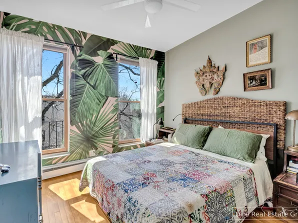 Discover this extra-bright, stunning two-bedroom apartment just two flights up in a 25-foot-wide townhouse. Boasting a floor-through layout, high ceilings, and hardwood floors throughout, this home offers plenty of space and charm. The bedrooms are generously sized: the main bedroom comfortably fits a California King bed, and features two oversized closets and two windows; and the second bedroom fits a queen size bed.
