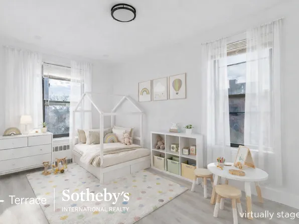 This massive and bright wraparound two-bedroom, two-bathroom home is perched on a high floor of a superbly located pre-war co-op in the heart of the Jackson Heights Historic District. It boasts classic finishes, impeccable hardwood floors, a large windowed eat-in kitchen, ample closets, and an abundance of natural light from three exposures.