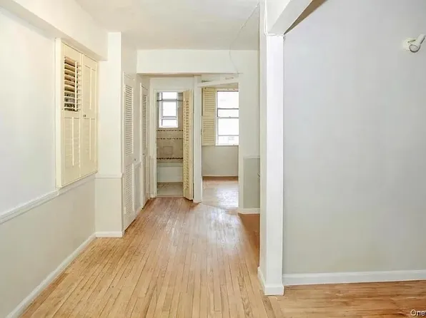 Welcome home to this warm, sunny, one bedroom at the Thomas Edison. The foyer invites you in and can flex to fit all your needs, with generous mudroom area, floor to ceiling closets on one side and a small counter bar nook, Oversized living room with southern views of mature trees and sunshine. Long hallways with closets along the way create distance and meander to find a sizable eat in kitchen with Old-New-York style exposed brick wall.