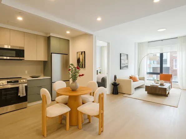This stunning 2-bedroom, 2-bathroom 3rd floor, walk-up apartment is in a highly desirable location between Prospect Lefferts Gardens and Flatbush. It has beautiful hardwood floors throughout the unit, leading to an open, stainless-steel kitchen with oak wood cabinets, granite countertops, a dishwasher, and ample cabinet storage space. The spacious living room allows many different furniture layouts.