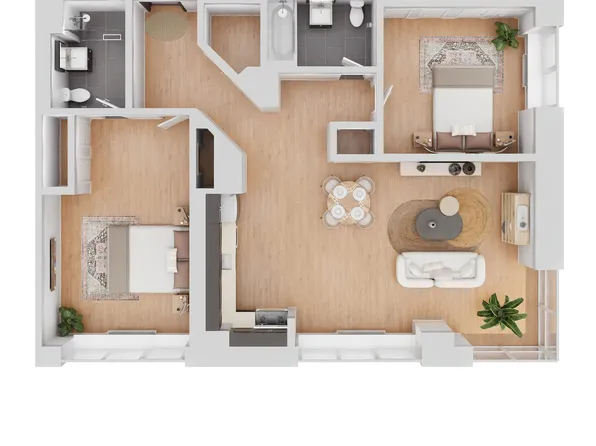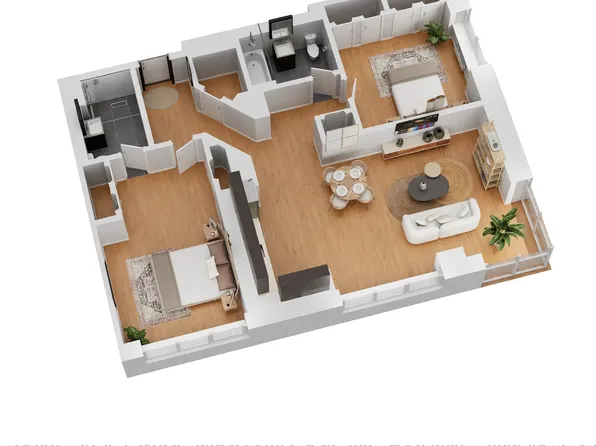 This modern apartment offers a perfect blend of comfort and style, making it ideal for contemporary living. The open concept design creates a seamless flow between the living, dining, and kitchen areas, enhancing the sense of space. Large windows flood the apartment with natural light, creating a warm and inviting atmosphere throughout the day.