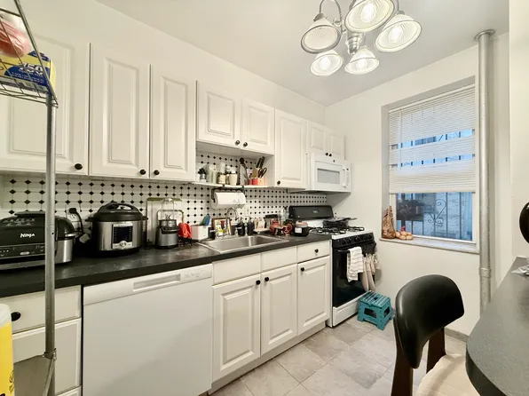 Short term rental 3-6 months. This beautiful 2 bedroom garden unit is full of light and charming details. Original parquet floors and tin ceilings. The modern kitchen features a spacious island, stainless steel appliances, and a brand new dishwasher. Lots got great storage space with closets in both bedrooms and a storage cage in the basement. The extra large and beautifully maintained backyard is private for the unit.