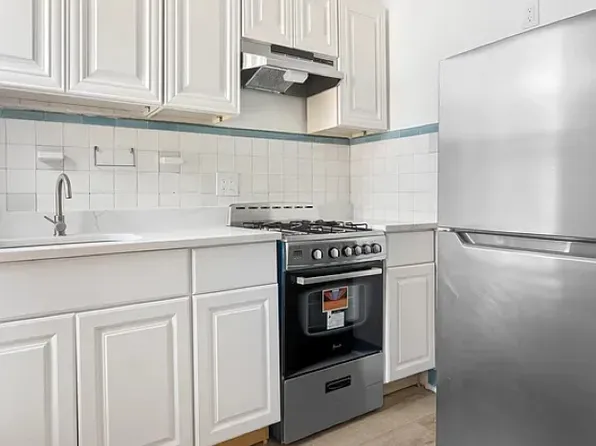 Located on President Street between 6th and 7th Avenues, this townhouse apartment offers a bright exposure to the South and features an exposed brick living/dining area, with a separate but conversational kitchen. The renovated kitchen features dark countertops, green shaker cabinets, and full sized appliances.