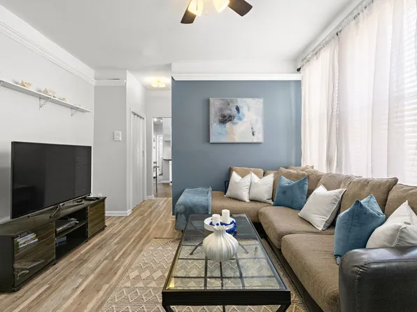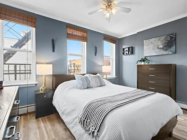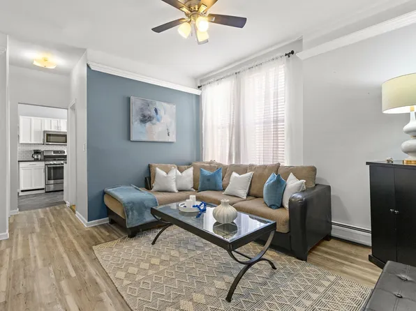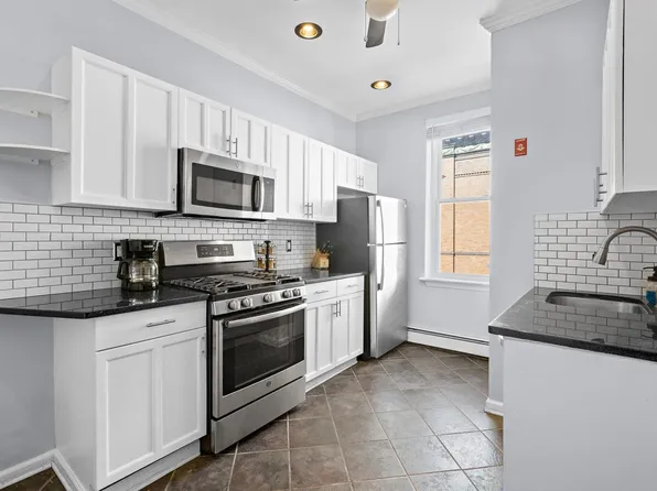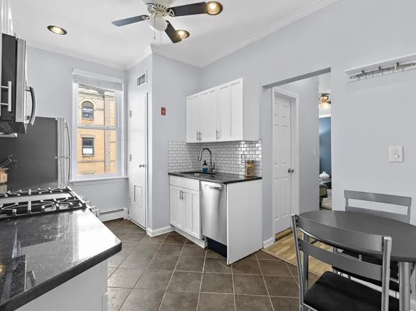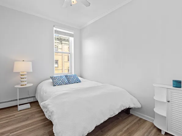 Charming 2-bedroom, 1-bath condo in the heart of Hoboken. This parlor-level home features a renovated kitchen with stainless steel appliances, Corian countertops, and a breakfast bar. High ceilings and hardwood floors run throughout, with bedrooms opposite ends for added privacy. The building offers on-site laundry, additional storage and a landscaped shared backyard.