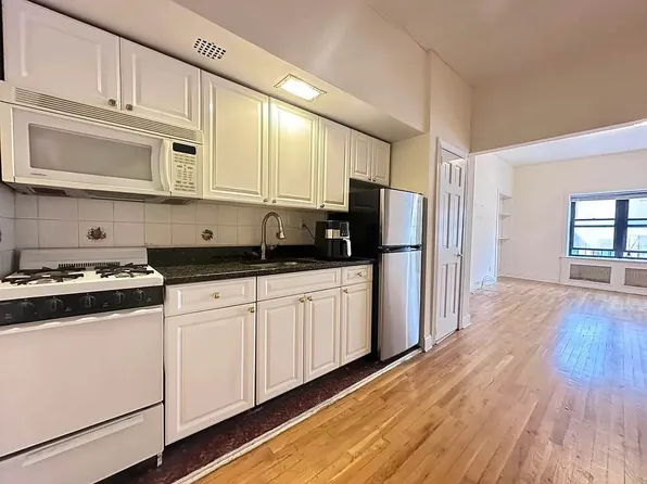 This apartment features high ceilings and beautiful exposed red brick walls! With a large queen size sleeping alcove with two large closets and oversized windows facing east. The kitchen was recently renovated and features plenty of cabinet storage and stainless steel appliances.