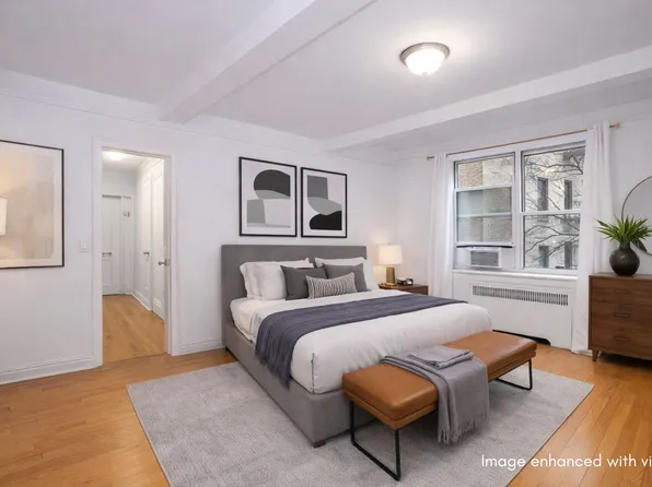 Fall in love with this beautifully renovated two-bedroom, two-bathroom home. Thoughtfully reconfigured with an efficient layout, Unit 2E is designed to maximize space and storage. The spacious, windowed kitchen opens seamlessly into a bright and airy living room, anchored by a sleek stone breakfast bar.