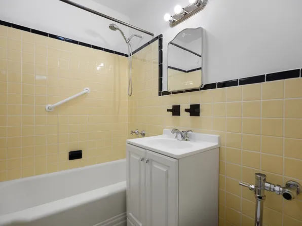 Tiled bathroom with full size...