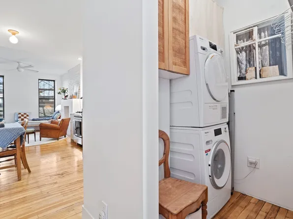 Stunning, floor through 1 Bedroom renovated and restored with all original details including: crown and floor molding, pocket doors, exposed brick and 10’ ceilings. Tired of looking at the generic wood floors? The owner retained the original wide-plank floors that many Brownstone’s lack. Let’s face it as this is not your average rental?! The open kitchen contains SS appliances with a marble countertop and spacious cabinetry.