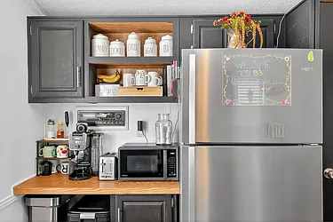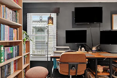 This fully renovated studio cooperative is the perfect mix of modern design and smart use of space. Renovated in 2024 from top to bottom, the layout offers flexibility with an 6' x 8' open area ideal for a sleeping nook, home office, or bonus room. Hardwood floors have been sanded and stained, complemented by recessed lighting and a ceiling fan for added comfort.