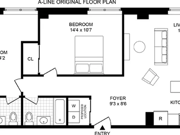 Located in well-maintained elevator building with laundry, gym,
