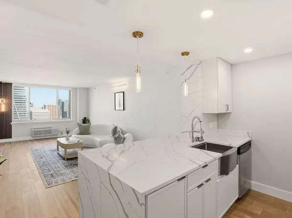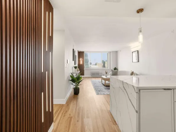 Seller is offering $10,000 concessions toward 1 year HOA and/or closing costs! Perched high in the sky, #4103 @ 88 Morgan is a fabulous, newly renovated 1 bedroom home. White quartz stone counter tops, shaker cabinets with nickel plated handles, soft closing drawers, pendant lighting, Kraus faucet, wide plank flooring, amazing Midtown Manhattan Skyline views to the north. You have reached the next level with 4103.